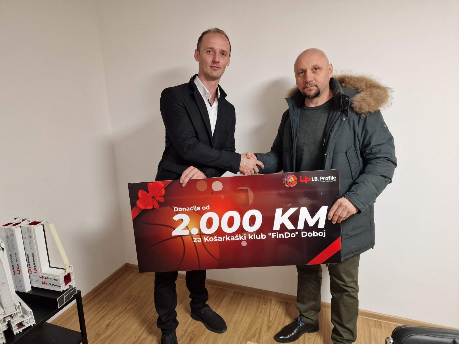 Donaciju u iznosu od 2000 KM Saši Šumatiću, predsjedniku kluba „FinDO“ uručio je Elvis Bošnjaković, direktor kompanije LB Profile BH.