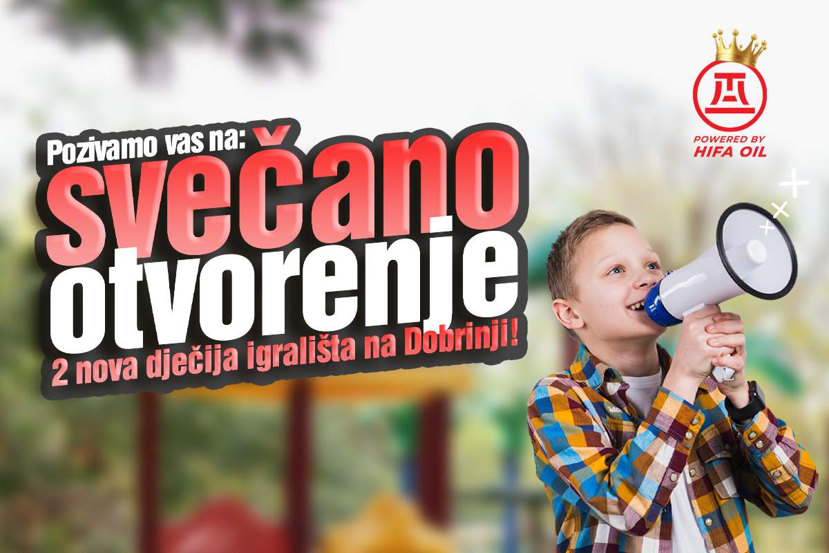 Kompanija Hifa-Oil vas poziva da se pridružite zabavi i da zajedno svečano otvorimo igrališta te uljepšamo djetinjstvo djeci Dobrinje.