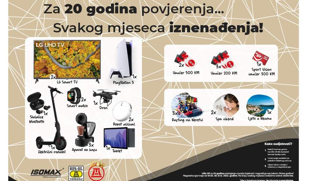 Lista dobitnika: Eldin Delić (Gračanica) - Sport Vision vaučer, Almir Berilo (Ilidža) - Xiaomi Mi pametni sat, Vildana Kurtović (Novi grad, Sarajevo) - slušalice, Muamer Camić (Bijeljina) - Xiaomi Mi pametni sat