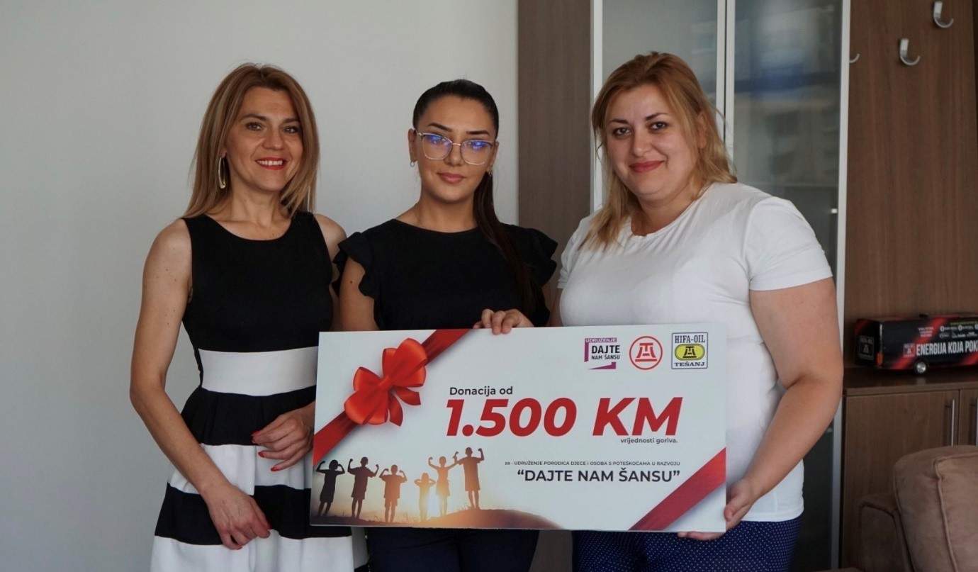 Kompanija Hifa-Oil, najveći privatni naftni distributer, nastavlja sa humanitarnim projektima koji su dio velike kampanje za 20 godina postojanja kompanije, a ovaj put donacija goriva otišla je u ruke Udruženju porodica djece i osoba s poteškoćama u razvoju “Dajte nam šansu”.