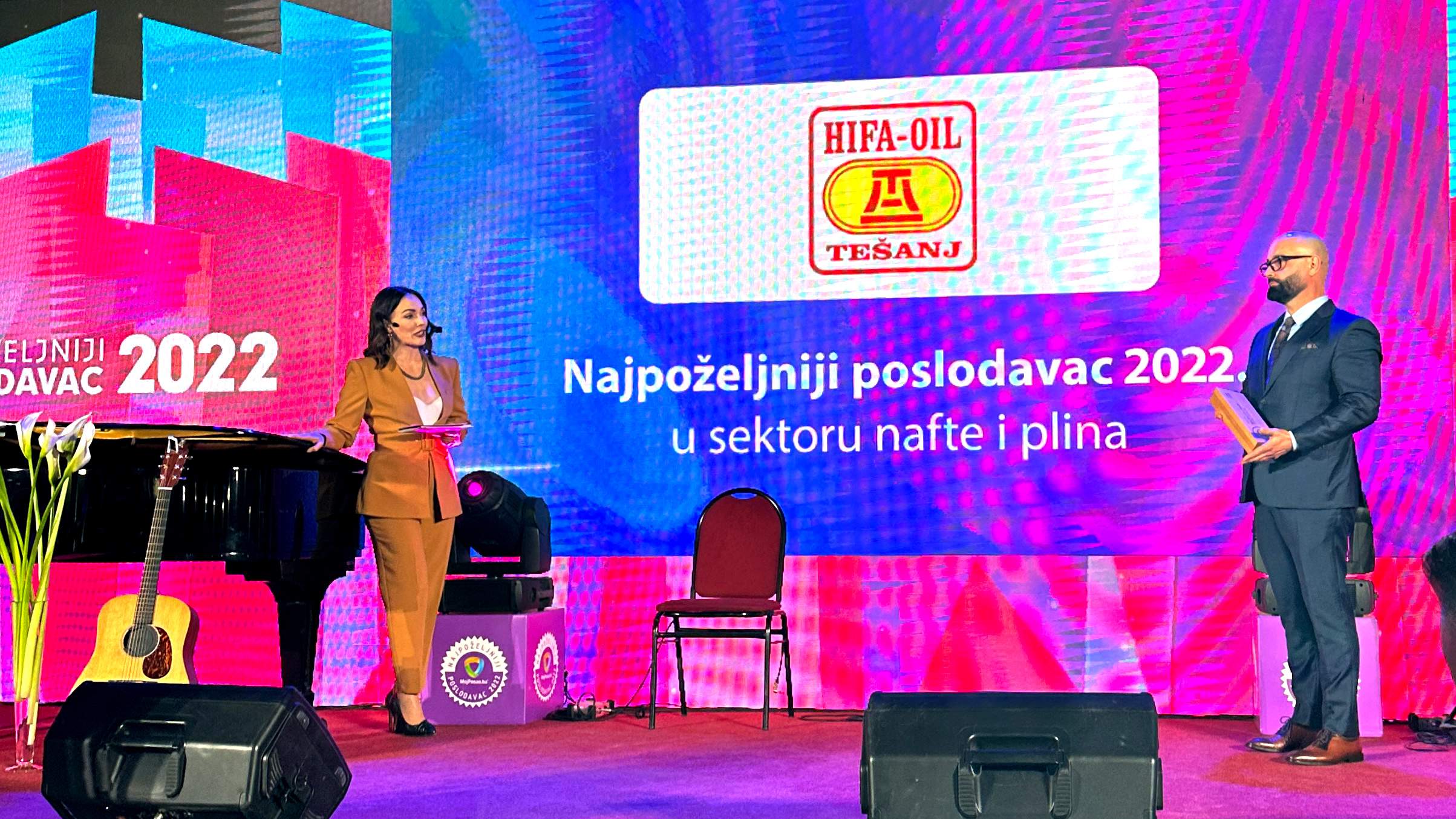 Osim priznanja za jednog od TOP 10 Najpoželjnijih poslodavca u BiH, kompanija Hifa-Oil izbrana je i za Najpoželjnijeg poslodavca u sektoru nafte i plina te za Najinkluzivnijeg poslodavca 2022. godine.